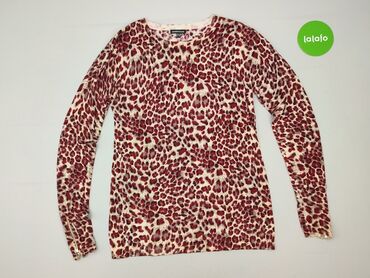 Sweter damski z nadrukiem w panterkę - Fason: dzianinowy sweter z długim rękawem, okrągły dekolt - Tył: krótki suwak przy dekolcie - Wzór: panterka w odcieniach beżu, czerni i ecru - Rozmiar z met...