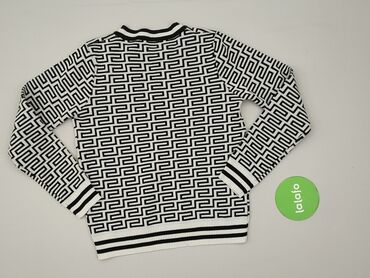 Sweter damski LIMITED EDITION - Model: dzianinowy sweter z okrągłym dekoltem - Wzór: geometryczny, kontrastowe czarno‑białe motywy; łączenie różnych deseni na korpusie i rękawach - Wykończenia: śc...