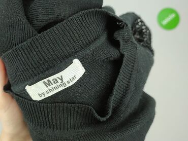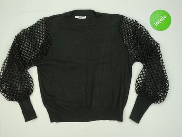 Damski sweter z połyskiem, rozmiar S - Fason: klasyczny pulower z okrągłym dekoltem, długi rękaw. - Kolor: czarny z drobną, granatowo-niebieską nitką dającą delikatny, wieczorowy połysk. - Detale:...