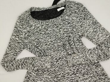 Damski sweter z cekinami, rozmiar S - Kolor: srebrzystoszary - Krój: klasyczny pulower z okrągłym dekoltem, długi rękaw raglanowy - Wykończenie: cała powierzchnia subtelnie zdobiona drobnymi cekin...Stan: