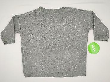 Sweter damski A•C&P, rozmiar M/L - Kolor: jasnoszary/melanż - Fason: klasyczny, z okrągłym dekoltem, długi rękaw - Dekor: aplikacje koronkowe w formie kwiatów z ozdobnym guzikiem oraz drobne połys...