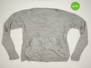 Sweter JIRGAO, rozmiar S/M - Klasyczny, ciepły sweter z mieszanki przędzy w odcieniach szarości - Dekolt w kształcie litery V z szerokim, prążkowanym ściągaczem - Długie rękawy z elastycznymi mank...