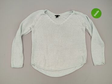 Ciemnozielony sweter damski marki H&M z kolekcji L.O.G.G. Ma okrągły dekolt i długie rękawy, co czyni go uniwersalnym elementem garderoby. Wykonany z dzianiny o drobnym splocie, sweter jest idealny...Stan: