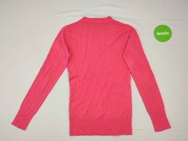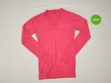 Sweter damski w kolorze malinowym/fuksji, dzianina o wyraźnym splocie. - Fason: luźniejszy, z dekoltem w kształcie V - Rękawy: długie, wykończone ściągaczami - Dół: ściągacz dopasowujący - ...