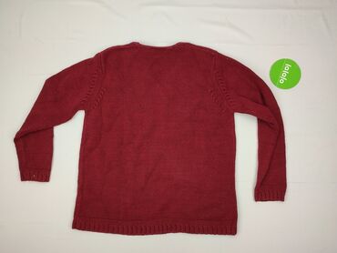 Czerwony sweter damski z długim rękawem - Krój: klasyczny, lekko dopasowany, dekolt w kształcie litery V - Długość rękawa: długi - Dzianina: miękka, puszysta, o wyraźnej fakturze (włochata nitka) ...