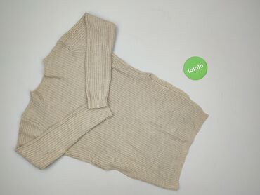 Sweter damski z długim rękawem, w kolorze jasnobeżowym. - Klasyczny fason, lekko wydłużony dół z delikatnymi rozcięciami po bokach - Dekolt w serek z ozdobnym, fakturowanym ściągaczem - Miękka, cie...Stan: