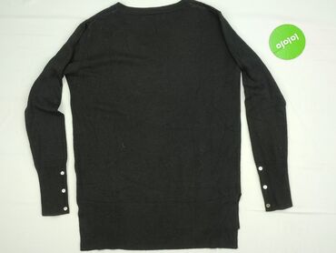 Czarny sweter damski Sinsay, rozmiar XS - Klasyczny krój z okrągłym dekoltem - Długi rękaw, ściągacze przy mankietach i u dołu - Ozdobne metalowe napy na obu ramionach (złoty kolor) - Gładka dzian...