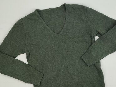 Sweter damski prążkowany, szary melanż - Krój: dopasowany, z długim rękawem - Dekolt: w serek (V-neck) - Dzianina: wyraźny pionowy prążek, elastyczna i miękka - Skład materiału (z metki): 50% wisk...