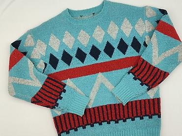 Damski sweter z dzianiny, rozmiar S. - Fason: klasyczny, z okrągłym dekoltem i długim rękawem - Wzór: zygzak/chevron na całej powierzchni - Kolory: odcienie beżu, brązu, oliwkowej zieleni i szaroś...