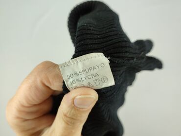 Czarny golf damski z długim rękawem. - Fason: dopasowany, klasyczny golf z wysoką, elastyczną stójką - Materiał: dzianina swetrowa (metka widoczna na zdjęciu) - Kolor: czarny - Detale: mankiety za...