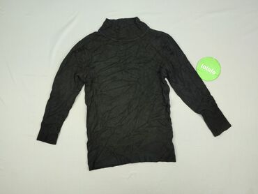 Czarny sweter damski z golfem - Fason: klasyczny, dopasowany, długi rękaw - Dekolt: golf/półgolf z prążkowanym ściągaczem - Wykończenia: prążkowane ściągacze przy mankietach i u dołu - Materiał: 7...