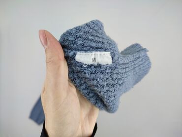 Sweter damski z golfem, kolor chłodny błękit/szaroniebieski. Miękka, pętelkowa faktura (bouclé) o wyraźnym, gęstym splocie. Luźniejszy, lekko oversize’owy krój z obniżoną linią ramion, rękawy 3/4–7/8 zakończone ściągaczem. Golf średniej wysokości, elastyczne wykończenia przy szyi, mankietach i dole. Rozmiar z metki: M. Materiał gruby, sprężysty, przyjemny w dotyku – idealny na chłodniejsze dni. Uniwersalny, minimalistyczny styl pasujący do jeansów, spódnic i spodni materiałowych. Kolor i faktura nadają swetrowi przytulny, elegancki charakter.