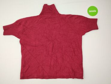 Sweter damski z golfem, krótki rękaw – fuksja - Fason: luźny, prosta linia, opuszczone ramiona - Dekolt: wysoki, szeroki golf w prążek - Rękaw: krótki, zakończony szerokim, elastycznym ściągaczem ...Stan:
