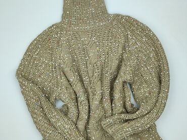 Sweter damski MLE, rozmiar S, wyprodukowany w Polsce. - Fason: oversize z wysokim, miękkim golfem - Kolor: karmelowy/beżowy - Dzianina o melanżowej fakturze, elastyczna i miła w dotyku - Skład: 30...