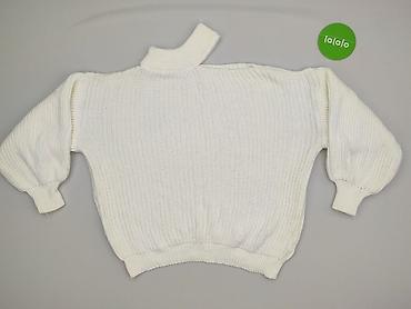 Sweter damski z golfem, ecru/kremowy, dzianina o wyraźnym, pionowym splocie.