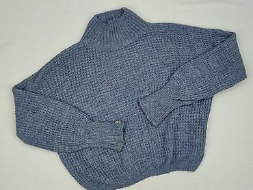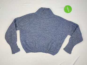 Sweter damski z golfem, kolor jasnoniebieski. - Krój: luźny, z obniżoną linią ramion - Dekolt: wysoki półgolf/golf z szerokim, prążkowanym ściągaczem - Rękawy: długie, zakończone szerokimi ściągac...