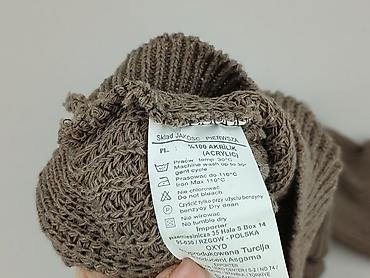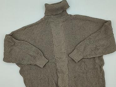 Sweter damski MLE, rozmiar S, wyprodukowany w Polsce. - Fason: oversize z wysokim, miękkim golfem - Kolor: karmelowy/beżowy - Dzianina o melanżowej fakturze, elastyczna i miła w dotyku - Skład: 30...