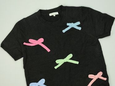 Czarny sweter/bluzka z krótkim rękawem BLUOLTRE - Model z okrągłym dekoltem i ściągaczami przy rękawach oraz u dołu - Przód zdobiony trzema aplikacjami kwiatów 3D z perełkowymi koralikami w środku...