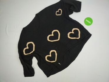 Czarny sweter damski z krótkim rękawem - Fason: luźna, lekko rozszerzana góra z krótkimi, opadającymi rękawkami - Dekolt: okrągły, ozdobiony rzędem czarnych koralików/kamidełek - Dzianina: miękka,...