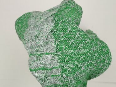 Sweter damski, zielony, dzianina - Fason: krótki/cropped, luźniejszy, z długim rękawem raglanowym - Splot: wyrazista, grubsza dzianina z dekoracyjnym wzorem w romb na przodzie; rękawy i tył w pion...