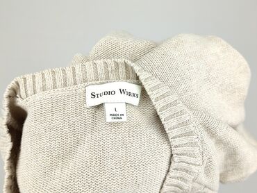 OkrągłySweter damski z okrągłym dekoltem marki Studio Works. Wykonany w 100% z bawełny, zapewnia komfort i przewiewność. Sweter w kolorze beżowym, z długim rękawem i prążkowanym dołem, mankietami oraz dekoltem. Idealny na co dzień, do wielu stylizacji. Sweter jest w rozmiarze L.