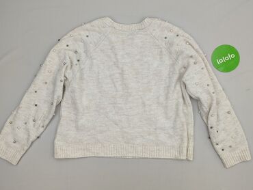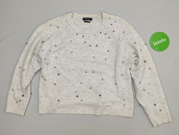 Sweter damski z perełkami, XS - Marka: Sinsay (etykieta widoczna na zdjęciu) - Rozmiar: XS - Kolor: jasnoszary/melanż - Dzianina prążkowana, elastyczna - Długi rękaw - Ozdobne aplikacje – drobne, ...