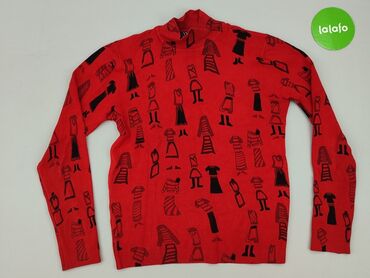 InnyCzerwony sweter damski Yongmei, rozmiar W/L. Model z półgolfem i długim rękawem. Całość pokryta oryginalnym, czarnym nadrukiem w stylizowane sylwetki i sukienki, rozmieszczonym na przodzie, tyle i rękawach. Elastyczne ściągacze przy kołnierzu, mankietach i u dołu. Dzianina średniej grubości, miękka i przyjemna w dotyku. Idealny do codziennych stylizacji z jeansami lub spódnicą dla osób lubiących wyraziste kolory i graficzne wzory. Marka: Yongmei. Kolor: intensywna czerwień z czarnym printem. Krój: prosty, wygodny. Rozmiar z metki: W/L.