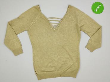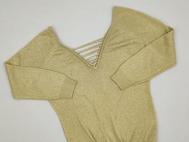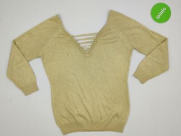 Sweter damski Made in Italy – złoty, z połyskiem - Krój: luźny, z obniżoną linią ramion, długie rękawy - Dekolt: w kształcie litery V - Kolor i wykończenie: złoty, metaliczny połysk z delikatną, s...