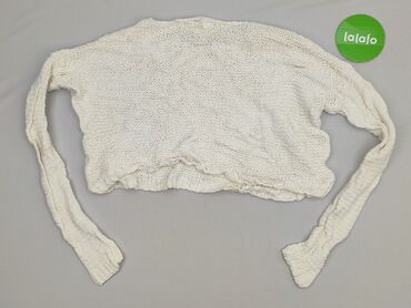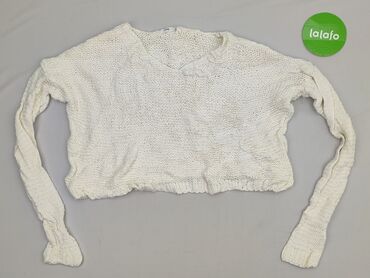 Sweter damski Sinsay, rozmiar S - Kolor: kremowy/ecru - Fason: klasyczny, lekko zaokrąglony dół, długi rękaw, okrągły dekolt - Ozdoby: naszyte kryształki/kamienie wzdłuż dekoltu (różne kształty, m...