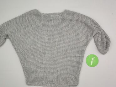 Szary sweter dzianinowy damski - Kolor: jasny szary - Krój: luźny, oversize z obniżoną linią ramion - Rękawy: 3/4, ażurowe (duże oczka) z elastycznymi ściągaczami - Przód: gładki, drobny splot - T...
