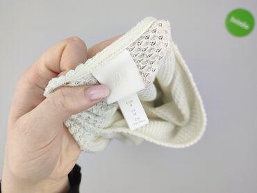 Sweter damski H&M, rozmiar S - Kolor: kremowy/ecru - Fason: krótki (cropped), swobodny - Dekolt: w kształcie litery V - Rękawy: długie, lekko bufiaste, zakończone ściągaczem - Splot: gruby, pionow...