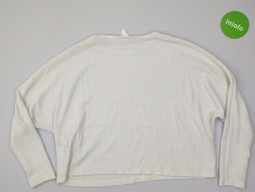 Sweter damski H&M, rozmiar M - Kolor: kremowy/ecru - Fason: swobodny, z obniżoną linią ramion; dłuższy tył - Splot: dekoracyjny, ażurowy/teksturalny na całej powierzchni - Rękawy: długie, wykończo...