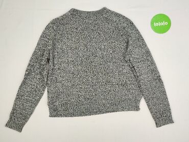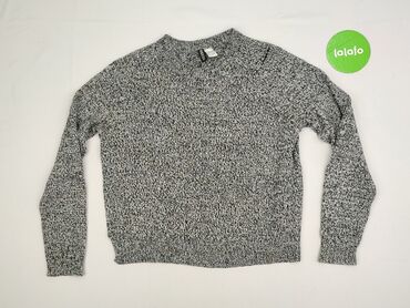 Sweter H&M Divided, rozmiar S - Klasyczny, melanżowy splot w odcieniach szarości z czarną nitką - Dół i mankiety w kontrastowej, prążkowanej bieli z cienką czarną lamówką - Okrągły dekolt, długie ...