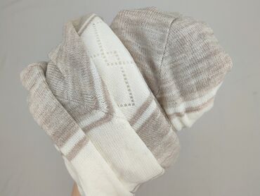 Sweter damski, dzianinowy, beżowo‑brązowy melanż - Fason: dłuższy, z zaokrąglonym dołem; rękawy długie - Splot: wyrazisty, ażurowo‑pleciony z geometrycznym wzorem - Dekolt: łódka - Materiał: 100% ...