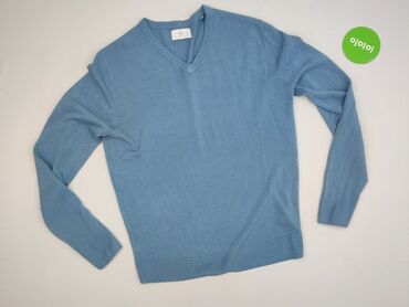 Sweter męski – delikatny błękit - Krój: klasyczny sweter z dekoltem w serek (V-neck) - Rękawy: długie - Dół i mankiety: ściągacze prążkowane - Dodatki konstrukcyjne: dyskretne, ukośne przeszycia p...Stan: