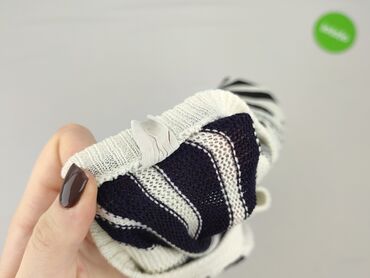 Sweter damski w paski - Klasyczny, gruby splot dzianiny - Wzór: poziome pasy w kolorze ecru/kremowym i jasnobeżowym - Fason prosty, lekko oversize z obniżoną linią ramion - Golfik/stójka przy szyi...