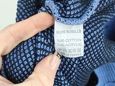 Męski sweter z dekoltem w serek, kolor granatowy. - Krój: klasyczny, długie rękawy, ściągacze przy mankietach i u dołu - Materiał: 50% wełna, 50% akryl (metka ze składem na zdjęciu) - Rozmiar: M (...