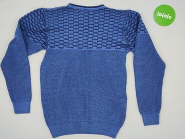 Męski sweter dzianinowy z długim rękawem - Kolor: ciemny turkus/teal - Krój: klasyczny, okrągły dekolt (crew neck) - Wykończenia: ściągacze przy kołnierzu, mankietach i dole - Materiał (z metki): ...Stan: