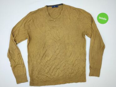 Sweter męski TU - Rozmiar: XL (z metki) - Kolor: brązowy melanż - Krój: klasyczny, z dekoltem w serek (V-neck) - Rękawy: długie - Materiał: 100% akryl (informacja z metki) - Wykończenia: ściągacze...