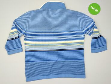 Sweter damski z dzianiny – prążkowany wzór w odcieniach niebieskiego, granatu i bieli. - Fason: dopasowany, z długim rękawem - Dekolt: w kształcie litery V - Splot: gładki, miękka dzianina, elas...