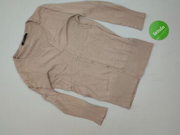 Beżowy kardigan damski H&M w rozmiarze M. Sweter charakteryzuje się dekoltem w kształcie litery V oraz zapięciem na guziki z przodu, co pozwala na różnorodne stylizacje. Długie rękawy zakończone są...