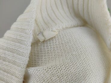 Sweter damski w jasnym, kremowym kolorze, wykonany z dzianiny o luźnym splocie. Posiada zamek błyskawiczny sięgający do połowy klatki piersiowej, co pozwala na regulację dekoltu. Długie rękawy zako...