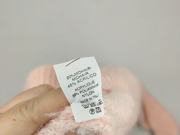 Sweter dziecięcy z włochatej przędzy, z długim rękawem i okrągłym dekoltem. - Kolorystyka: melanż błękitów, bieli, kremu i żółci, tworzący lekko geometryczny wzór. - Faktura: miękka, puchata/pr...