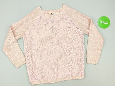 Sweter dziewczęcy, różowy, z cekinami - Fason: klasyczny, prosta linia, długi rękaw - Dekolt: okrągły - Dzianina: miękka, pętelkowa/„bouclé” z delikatnym połyskiem - Wykończenie: na całej powierzc...Stan: