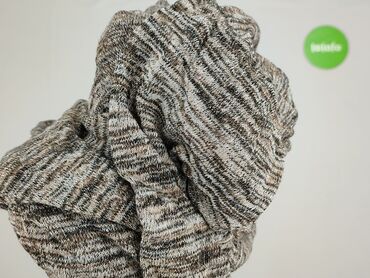 Sweter damski dzianinowy, kopertowy - Kolor: melanż brązu i szarości - Fason: dopasowany, kopertowy przód z lekkim marszczeniem i wydłużonym dołem - Rękawy: długie, rozszerzane przy mankietach - S...