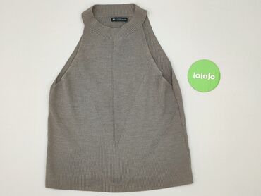 - Fason: bez rękawów, halter/american armholes z wysoką, prążkowaną stójką