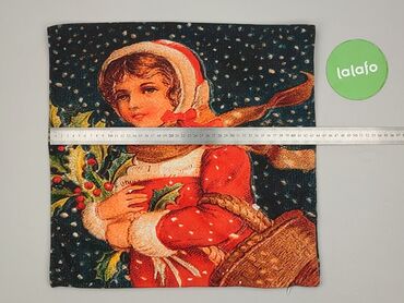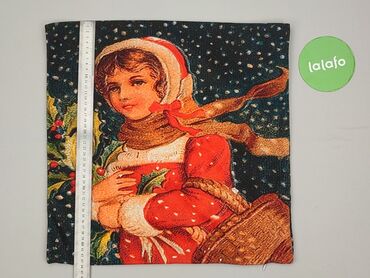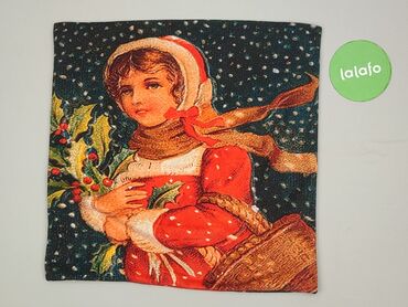 Poszewka dekoracyjna z motywem świątecznym – anioły - Nadruk: stylizowana, vintage’owa kartka „Merry Christmas” – dwa anioły czytające czerwoną księgę, świece, gwiazda betlejemska, świąteczna ziel...