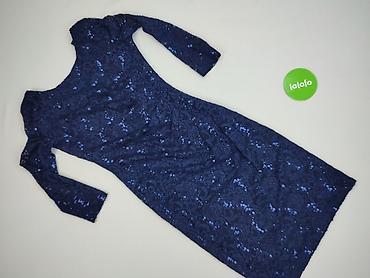 Sukienka damska SCARIA, rozmiar 40 - Fason: dopasowana, ołówkowa, z krótkim rękawem - Długość: do kolan (mini/midi w zależności od wzrostu) - Kolor: granatowy z jasnoniebieskimi cekinami tworzącymi...