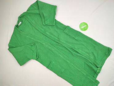 Długi kardigan damski, kolor butelkowa zieleń - Fason: otwarty, bez zapięcia, z obszernym kołnierzem/szalowym wykończeniem - Splot: gruby, prążkowany z elementami warkocza, elastyczne ściągacze pr...