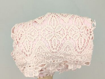 Ażurowe szorty damskie - Kolor: jasny błękit (baby blue) - Materiał: koronkowa, ażurowa warstwa z dekoracyjnym wzorem; pod spodem miękka, nieprześwitująca podszewka - Pas: szeroka, marszczona gumk...Stan: